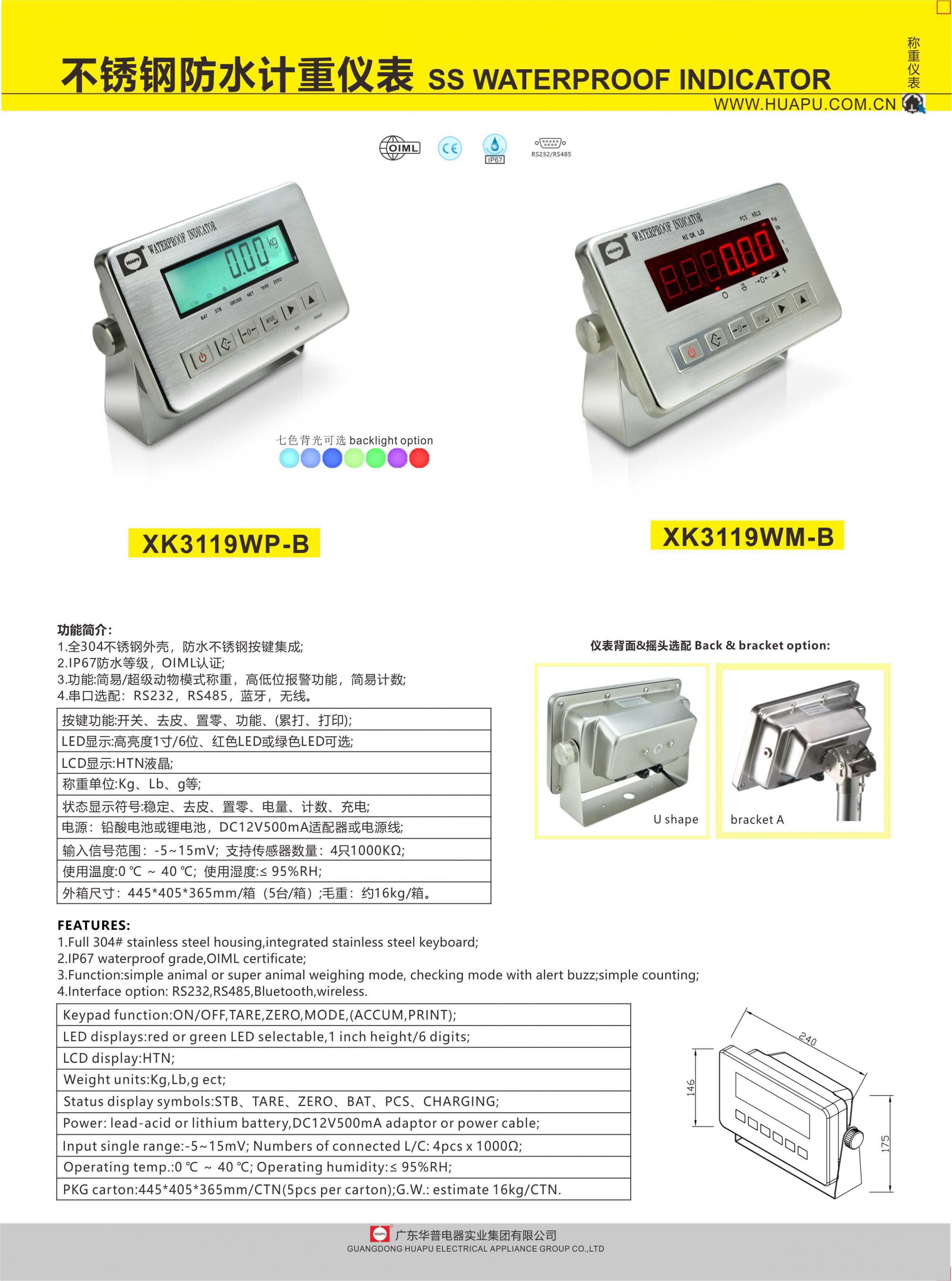XK3119WM-PRO 全不锈钢称重仪表 full stainless steel weighing indicator